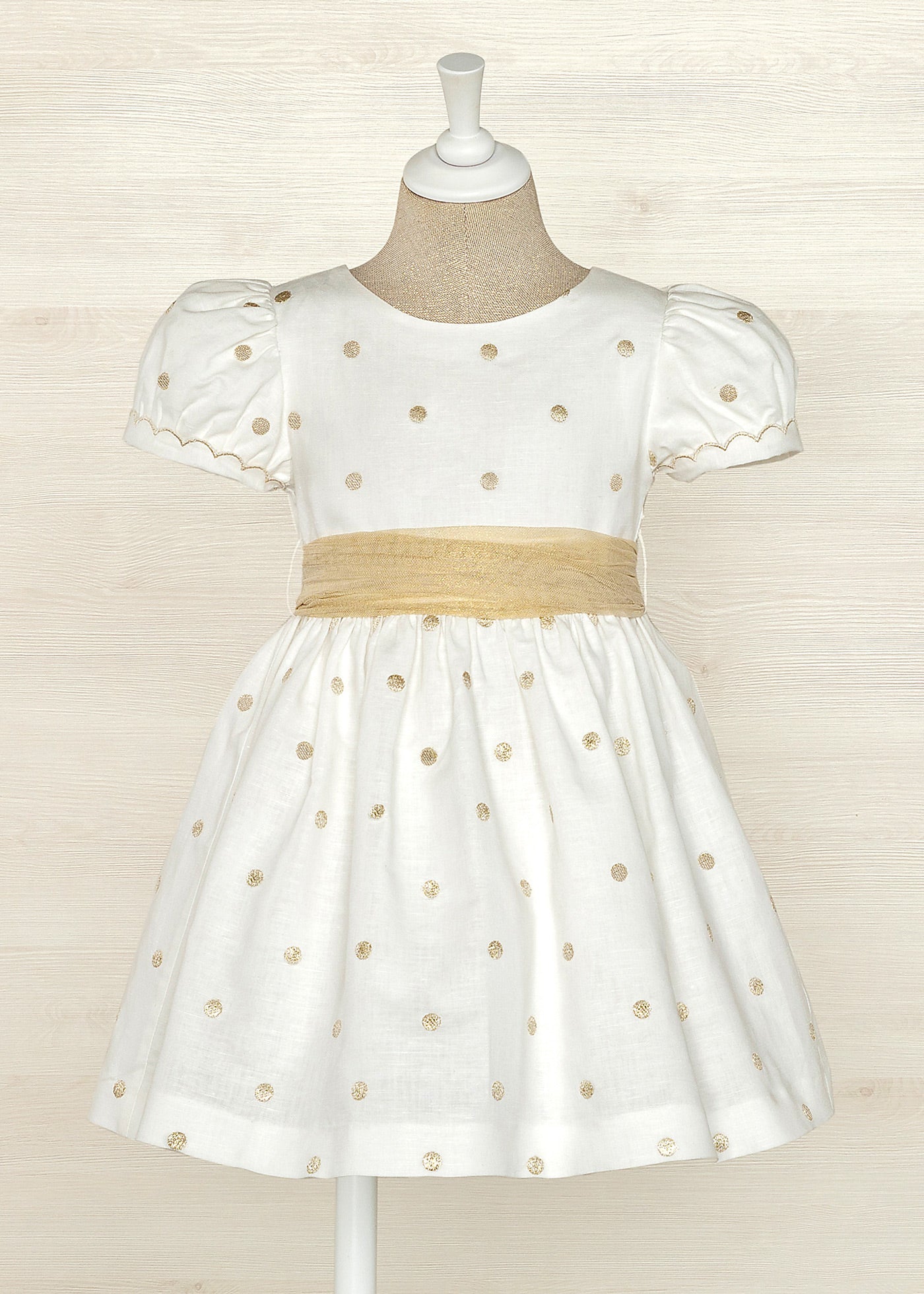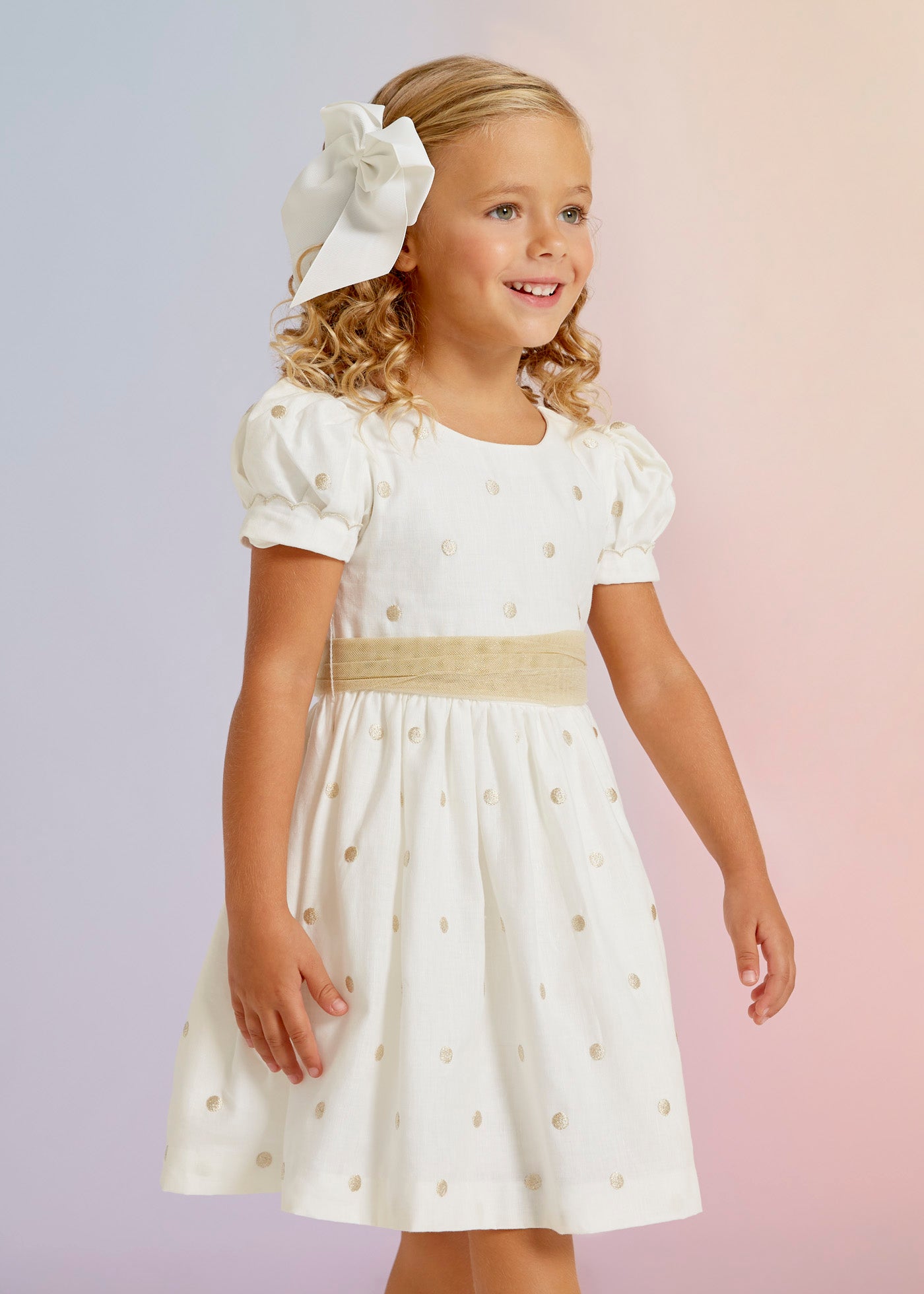 Abel & Lula Cap Sleeve Polka Dot Tulle Dress w/Belt _White 5025-009 -