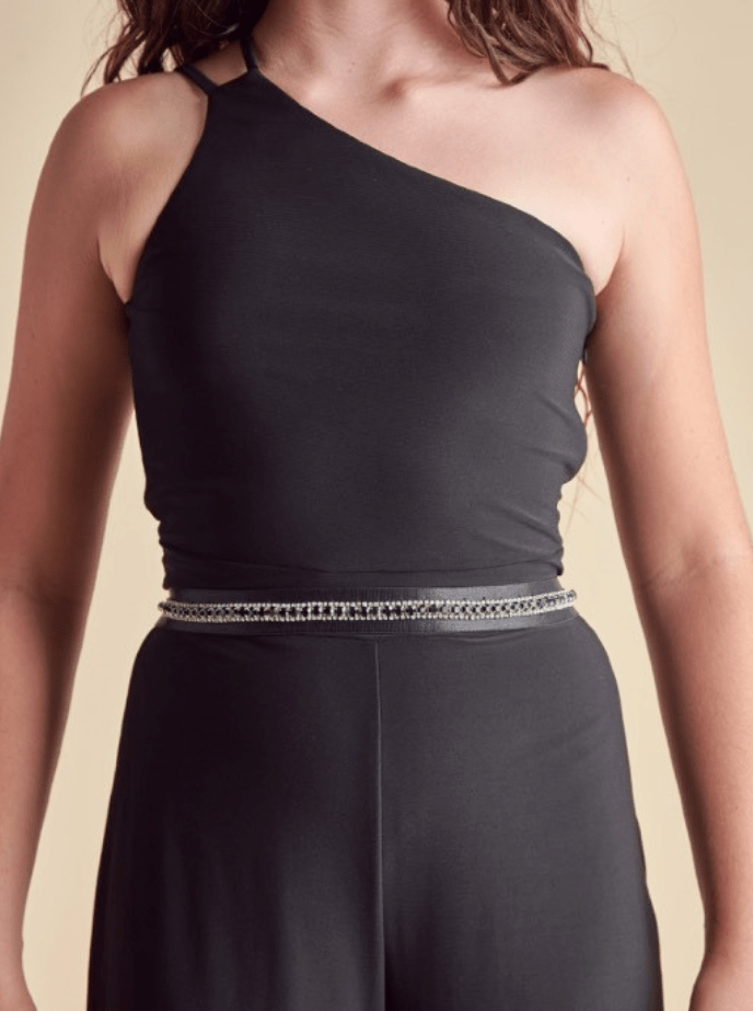 • UDT Satin Elasticated Crystal Belt w/Snap Closure _Black 4535-BLK
