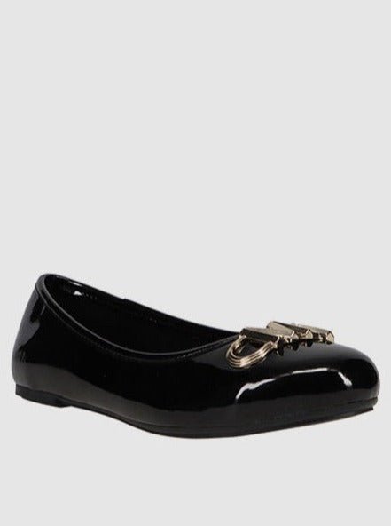 • Michael Kors Logo Print Kenya Lock Ballet Shoes Black & Gold_MK100796C-039