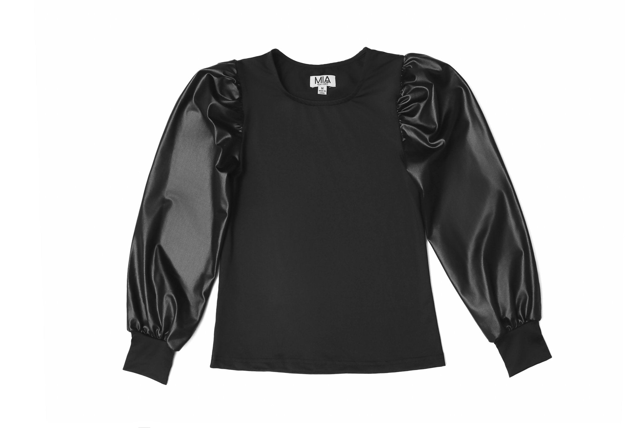 Teen Girls Long Sleeve Top with Shimmery Sleeves - NorthGirls